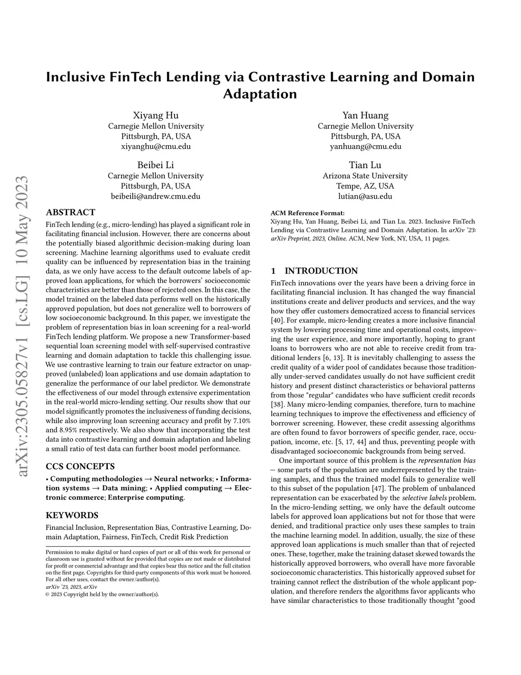 Inclusive FinTech Lending via Contrastive Learning and Domain Adaptation