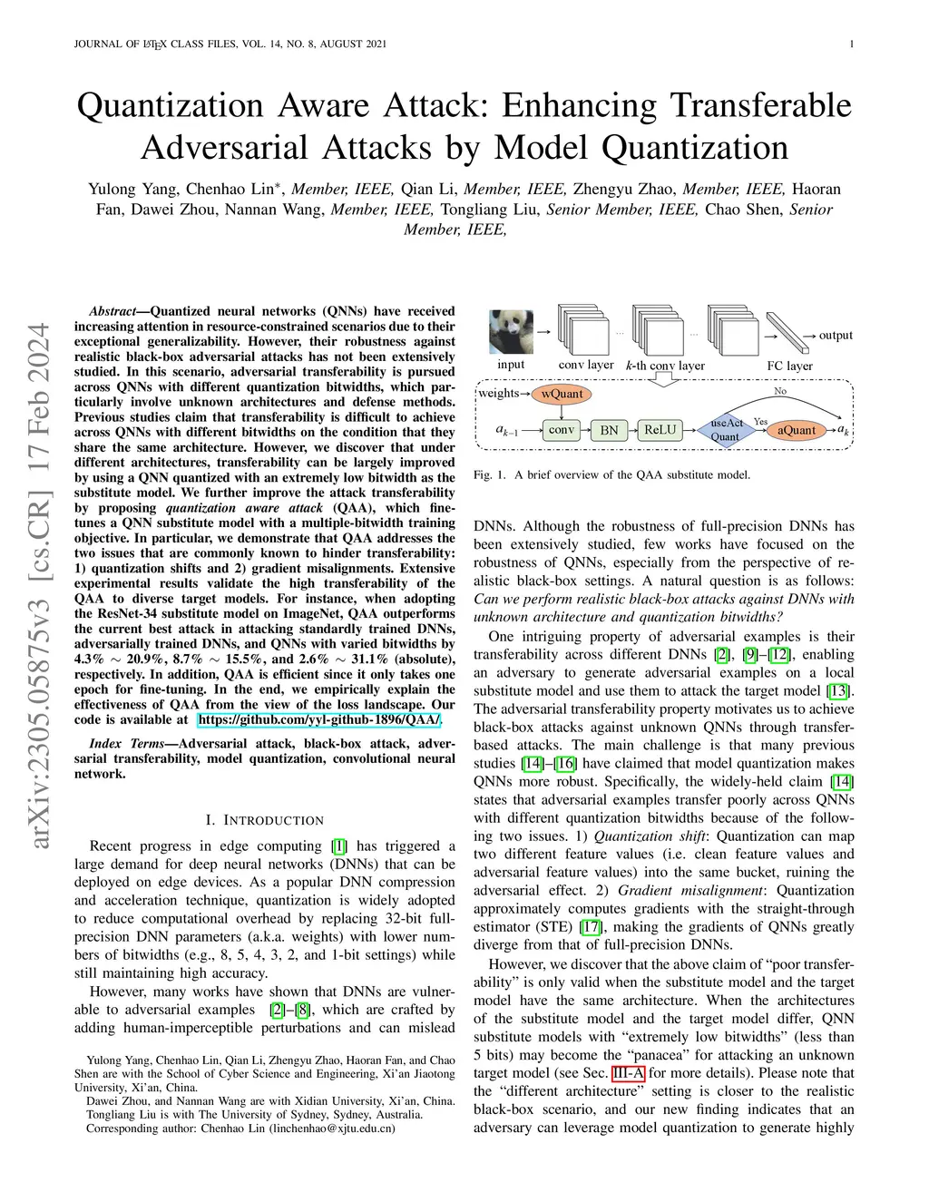 Quantized neural networks (QNNs) have received increasing attention in resource-constrained scenarios due to their exceptional generalizability. However, their robustness against realistic black-box adversarial attacks has not been extensively studied. In this scenario, adversarial transferability is pursued across QNNs with different quantization bitwidths, which particularly involve unknown architectures and defense methods. Previous studies claim that transferability is difficult to achieve across QNNs with different bitwidths on the condition that they share the same architecture. However, we discover that under different architectures, transferability can be largely improved by using a QNN quantized with an extremely low bitwidth as the substitute model. We further improve the attack transferability by proposing \textit{quantization aware attack} (QAA), which fine-tunes a QNN substitute model with a multiple-bitwidth training objective. In particular, we demonstrate that QAA addresses the two issues that are commonly known to hinder transferability: 1) quantization shifts and 2) gradient misalignments. Extensive experimental results validate the high transferability of the QAA to diverse target models. For instance, when adopting the ResNet-34 substitute model on ImageNet, QAA outperforms the current best attack in attacking standardly trained DNNs, adversarially trained DNNs, and QNNs with varied bitwidths by 4.3\% 20.9\%, 8.7\% 15.5\%, and 2.6\% 31.1\% (absolute), respectively. In addition, QAA is efficient since it only takes one epoch for fine-tuning. In the end, we empirically explain the effectiveness of QAA from the view of the loss landscape. Our code is available at https://github.com/yyl-github-1896/QAA/