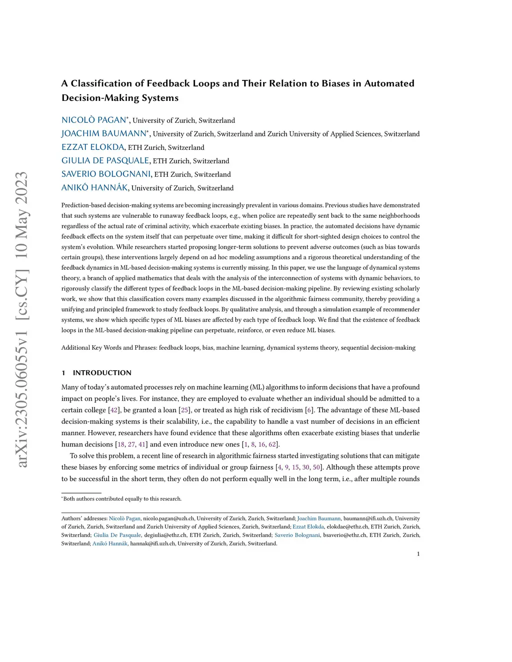 A Classification of Feedback Loops and Their Relation to Biases in