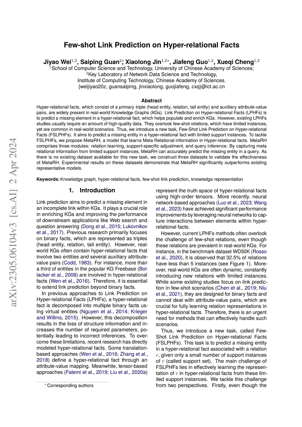Hyper-relational facts, which consist of a primary triple (head entity, relation, tail entity) and auxiliary attribute-value pairs, are widely present in real-world Knowledge Graphs (KGs). Link Prediction on Hyper-relational Facts (LPHFs) is to predict a missing element in a hyper-relational fact, which helps populate and enrich KGs. However, existing LPHFs studies usually require an amount of high-quality data. They overlook few-shot relations, which have limited instances, yet are common in real-world scenarios. Thus, we introduce a new task, Few-Shot Link Prediction on Hyper-relational Facts (FSLPHFs). It aims to predict a missing entity in a hyper-relational fact with limited support instances. To tackle FSLPHFs, we propose MetaRH, a model that learns Meta Relational information in Hyper-relational facts. MetaRH comprises three modules: relation learning, support-specific adjustment, and query inference. By capturing meta relational information from limited support instances, MetaRH can accurately predict the missing entity in a query. As there is no existing dataset available for this new task, we construct three datasets to validate the effectiveness of MetaRH. Experimental results on these datasets demonstrate that MetaRH significantly outperforms existing representative models.