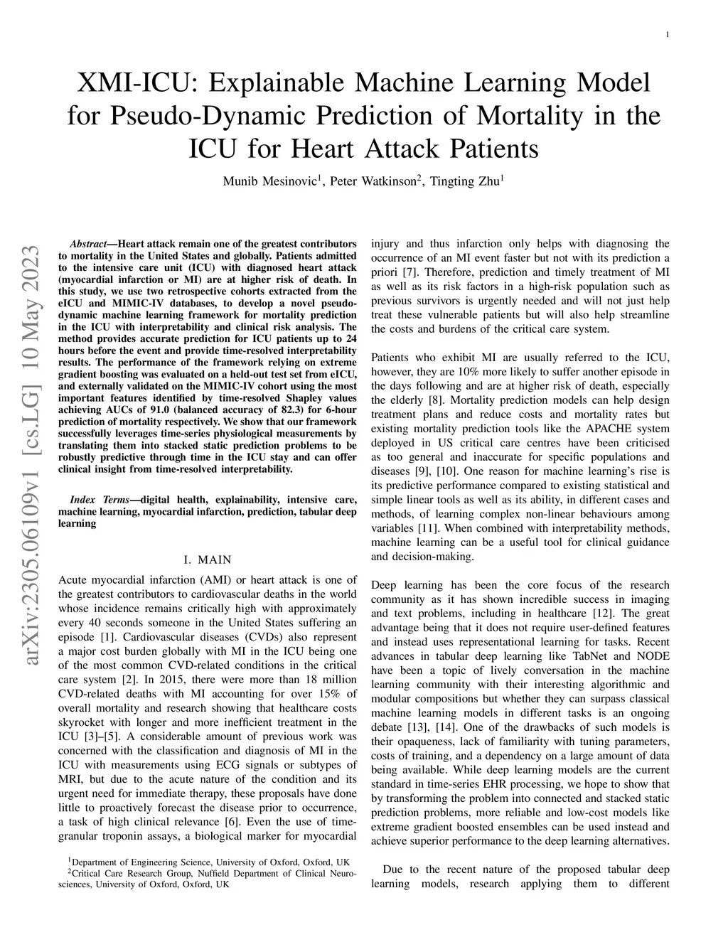 Prediction of Mortality in the ICU for Heart Attack Patients