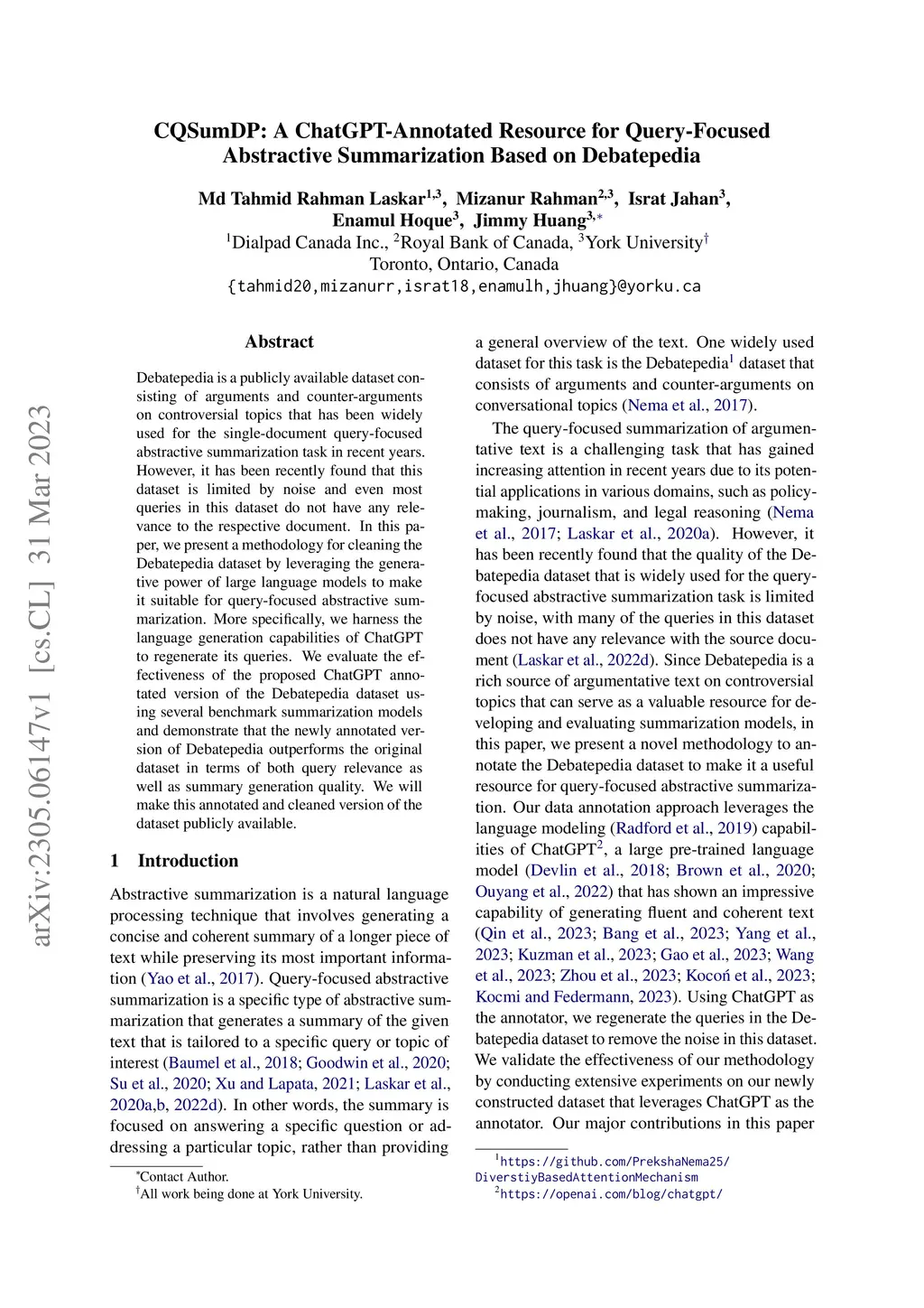 CQSumDP: A ChatGPT-Annotated Resource for Query-Focused Abstractive