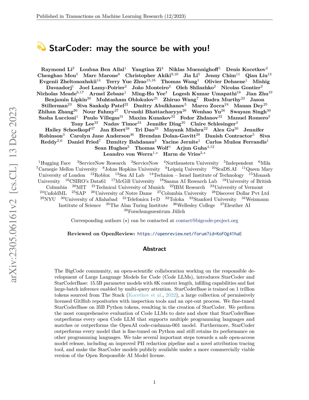 StarCoder: may the source be with you!
