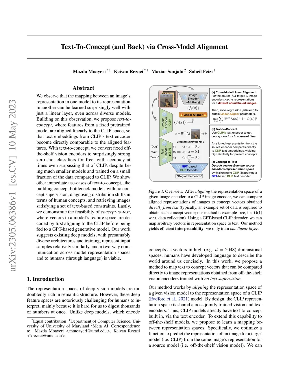 Text-To-Concept (and Back) via Cross-Model Alignment