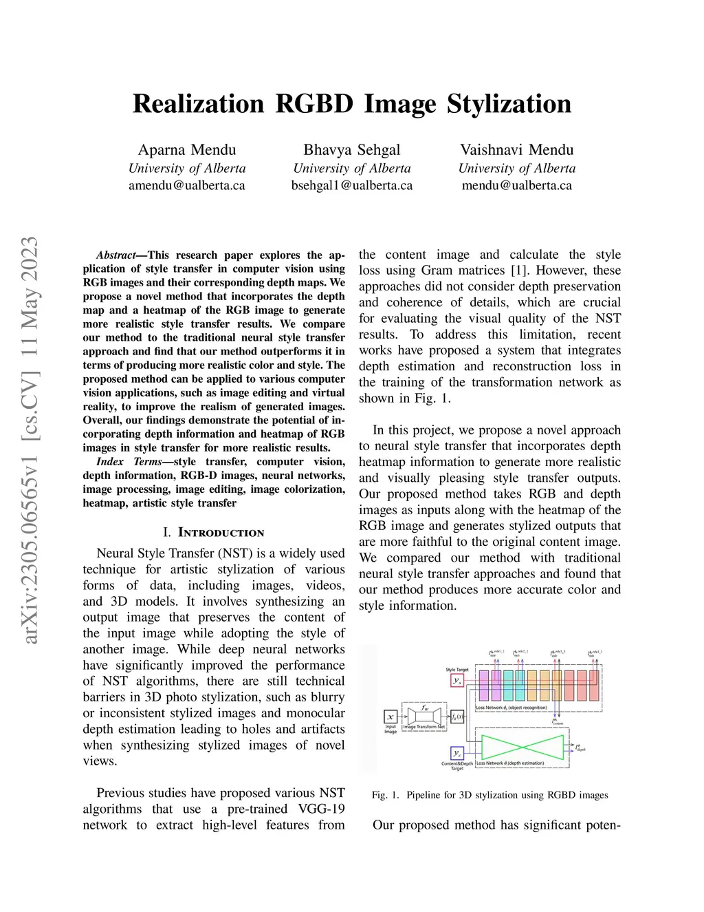 This research paper explores the application of style transfer in computer vision using RGB images and their corresponding depth maps. We propose a novel method that incorporates the depth map and a heatmap of the RGB image to generate more realistic style transfer results. We compare our method to the traditional neural style transfer approach and find that our method outperforms it in terms of producing more realistic color and style. The proposed method can be applied to various computer vision applications, such as image editing and virtual reality, to improve the realism of generated images. Overall, our findings demonstrate the potential of incorporating depth information and heatmap of RGB images in style transfer for more realistic results.