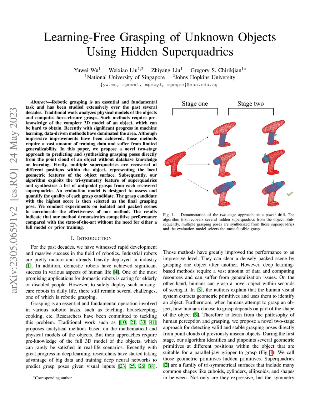 Learning-Free Grasping of Unknown Objects Using Hidden Superquadrics