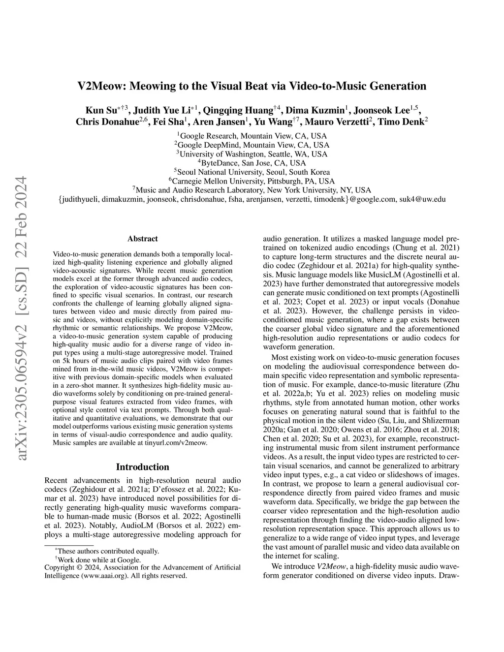 V2Meow: Meowing to the Visual Beat via Video-to-Music Generation