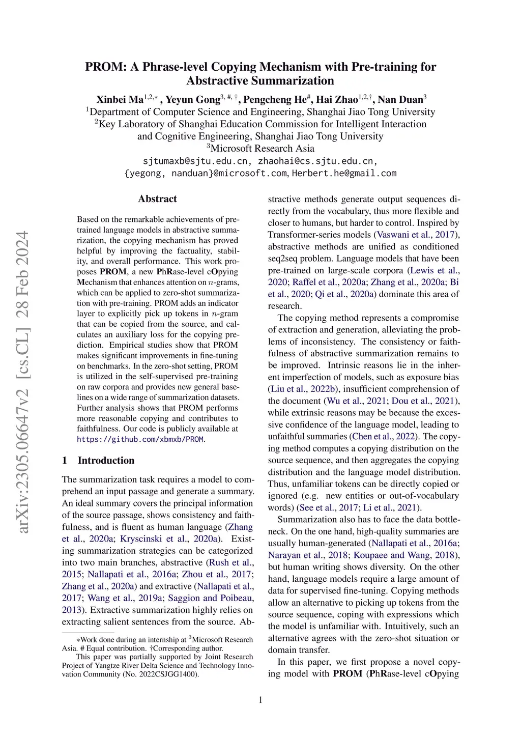 PROM: A Phrase-level Copying Mechanism with Pre-training for Abstractive