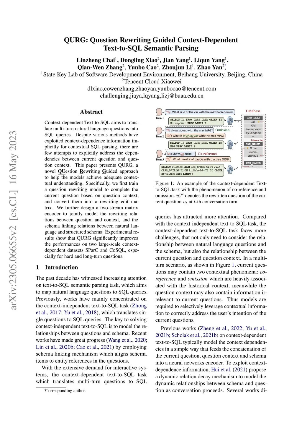 QURG: Question Rewriting Guided Context-Dependent Text-to-SQL Semantic