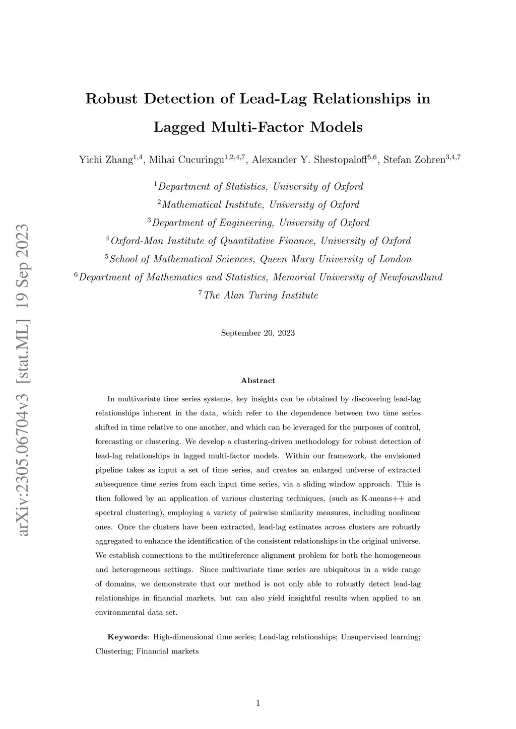 In multivariate time series systems, key insights can be obtained by discovering lead-lag relationships inherent in the data, which refer to the dependence between two time series shifted in time relative to one another, and which can be leveraged for the purposes of control, forecasting or clustering. We develop a clustering-driven methodology for the robust detection of lead-lag relationships in lagged multi-factor models. Within our framework, the envisioned pipeline takes as input a set of time series, and creates an enlarged universe of extracted subsequence time series from each input time series, by using a sliding window approach. We then apply various clustering techniques (e.g, K-means++ and spectral clustering), employing a variety of pairwise similarity measures, including nonlinear ones. Once the clusters have been extracted, lead-lag estimates across clusters are aggregated to enhance the identification of the consistent relationships in the original universe. Since multivariate time series are ubiquitous in a wide range of domains, we demonstrate that our method is not only able to robustly detect lead-lag relationships in financial markets, but can also yield insightful results when applied to an environmental data set.