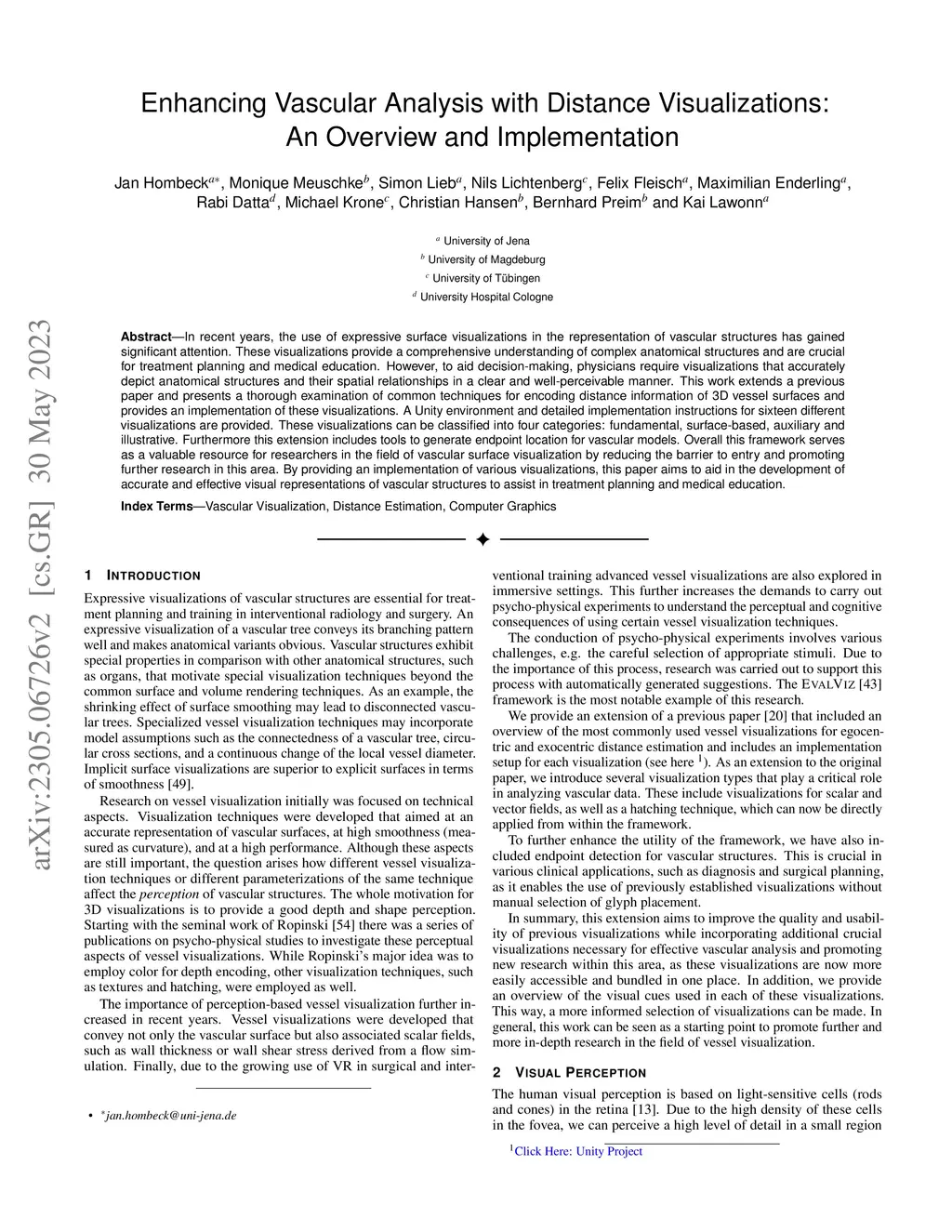 In recent years, the use of expressive surface visualizations in the representation of vascular structures has gained significant attention. These visualizations provide a comprehensive understanding of complex anatomical structures and are crucial for treatment planning and medical education. However, to aid decision-making, physicians require visualizations that accurately depict anatomical structures and their spatial relationships in a clear and well-perceivable manner. This work extends a previous paper and presents a thorough examination of common techniques for encoding distance information of 3D vessel surfaces and provides an implementation of these visualizations. A Unity environment and detailed implementation instructions for sixteen different visualizations are provided. These visualizations can be classified into four categories: fundamental, surface-based, auxiliary, and illustrative. Furthermore, this extension includes tools to generate endpoint locations for vascular models. Overall this framework serves as a valuable resource for researchers in the field of vascular surface visualization by reducing the barrier to entry and promoting further research in this area. By providing an implementation of various visualizations, this paper aims to aid in the development of accurate and effective visual representations of vascular structures to assist in treatment planning and medical education.