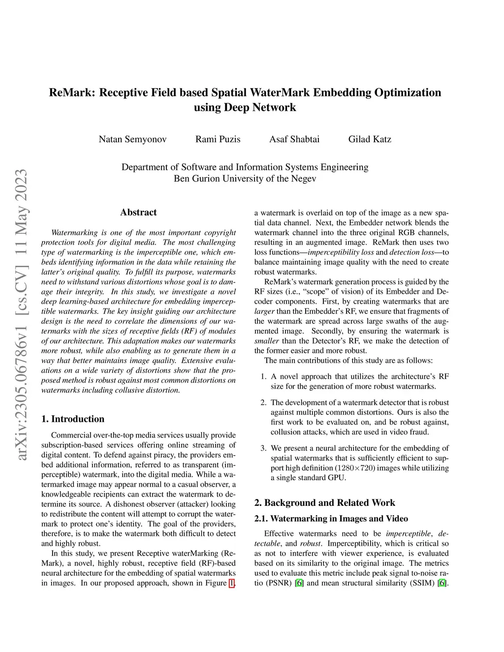 ReMark: Receptive Field based Spatial WaterMark Embedding Optimization