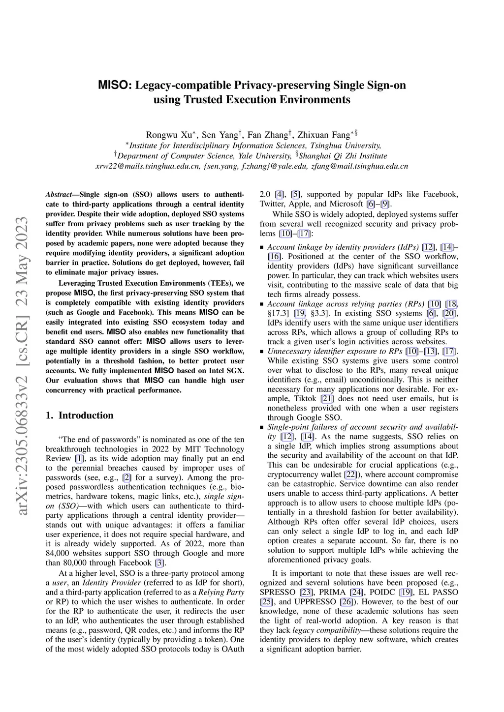 MISO: Legacy-compatible Privacy-preserving Single Sign-on using Trusted