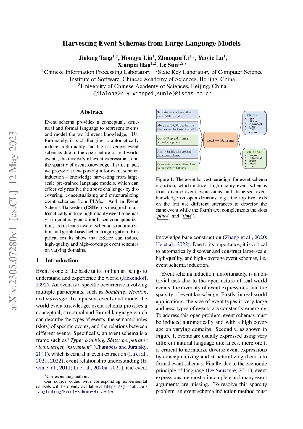 Event schema provides a conceptual, structural and formal language to represent events and model the world event knowledge. Unfortunately, it is challenging to automatically induce high-quality and high-coverage event schemas due to the open nature of real-world events, the diversity of event expressions, and the sparsity of event knowledge. In this paper, we propose a new paradigm for event schema induction -- knowledge harvesting from large-scale pre-trained language models, which can effectively resolve the above challenges by discovering, conceptualizing and structuralizing event schemas from PLMs. And an Event Schema Harvester (ESHer) is designed to automatically induce high-quality event schemas via in-context generation-based conceptualization, confidence-aware schema structuralization and graph-based schema aggregation. Empirical results show that ESHer can induce high-quality and high-coverage event schemas on varying domains.