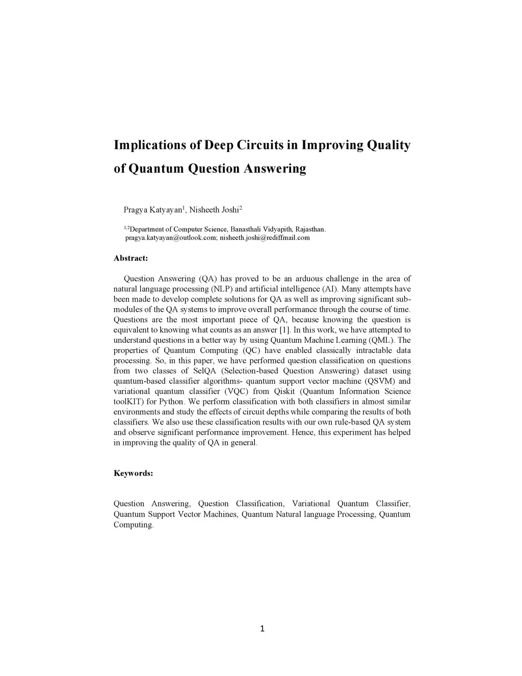 Implications of Deep Circuits in Improving Quality of Quantum Question