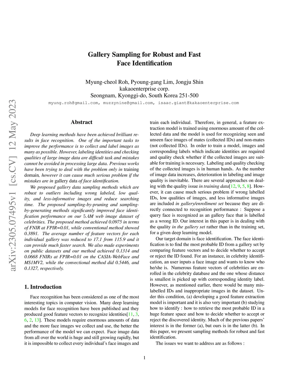 Deep learning methods have been achieved brilliant results in face recognition. One of the important tasks to improve the performance is to collect and label images as many as possible. However, labeling identities and checking qualities of large image data are difficult task and mistakes cannot be avoided in processing large data. Previous works have been trying to deal with the problem only in training domain, however it can cause much serious problem if the mistakes are in gallery data of face identification. We proposed gallery data sampling methods which are robust to outliers including wrong labeled, low quality, and less-informative images and reduce searching time. The proposed sampling-by-pruning and sampling-by-generating methods significantly improved face identification performance on our 5.4M web image dataset of celebrities. The proposed method achieved 0.0975 in terms of FNIR at FPIR=0.01, while conventional method showed 0.3891. The average number of feature vectors for each individual gallery was reduced to 17.1 from 115.9 and it can provide much faster search. We also made experiments on public datasets and our method achieved 0.1314 and 0.0668 FNIRs at FPIR=0.01 on the CASIA-WebFace and MS1MV2, while the convectional method did 0.5446, and 0.1327, respectively.