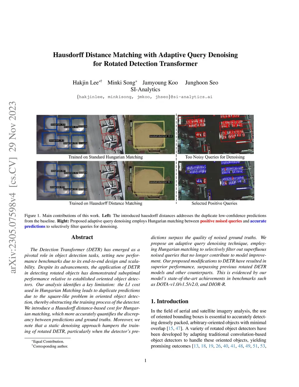 Hausdorff Distance Matching with Adaptive Query Denoising for Rotated