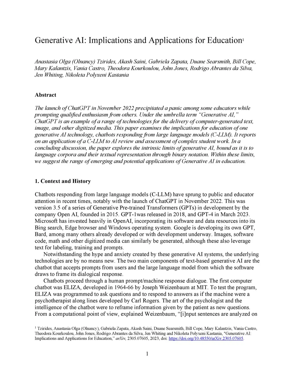 Generative AI: Implications and Applications for Education