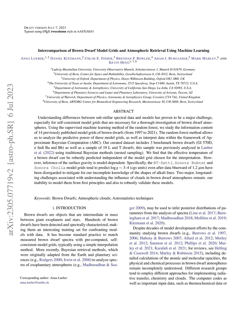 Understanding differences between sub-stellar spectral data and models has proven to be a major challenge, especially for self-consistent model grids that are necessary for a thorough investigation of brown dwarf atmospheres. Using the supervised machine learning method of the random forest, we study the information content of 14 previously published model grids of brown dwarfs (from 1997 to 2021). The random forest method allows us to analyze the predictive power of these model grids, as well as interpret data within the framework of Approximate Bayesian Computation (ABC). Our curated dataset includes 3 benchmark brown dwarfs (Gl 570D, {\epsilon} Indi Ba and Bb) as well as a sample of 19 L and T dwarfs; this sample was previously analyzed in Lueber et al. (2022) using traditional Bayesian methods (nested sampling). We find that the effective temperature of a brown dwarf can be robustly predicted independent of the model grid chosen for the interpretation. However, inference of the surface gravity is model-dependent. Specifically, the BT-Settl, Sonora Bobcat and Sonora Cholla model grids tend to predict logg ~3-4 (cgs units) even after data blueward of 1.2 {\mu}m have been disregarded to mitigate for our incomplete knowledge of the shapes of alkali lines. Two major, longstanding challenges associated with understanding the influence of clouds in brown dwarf atmospheres remain: our inability to model them from first principles and also to robustly validate these models.