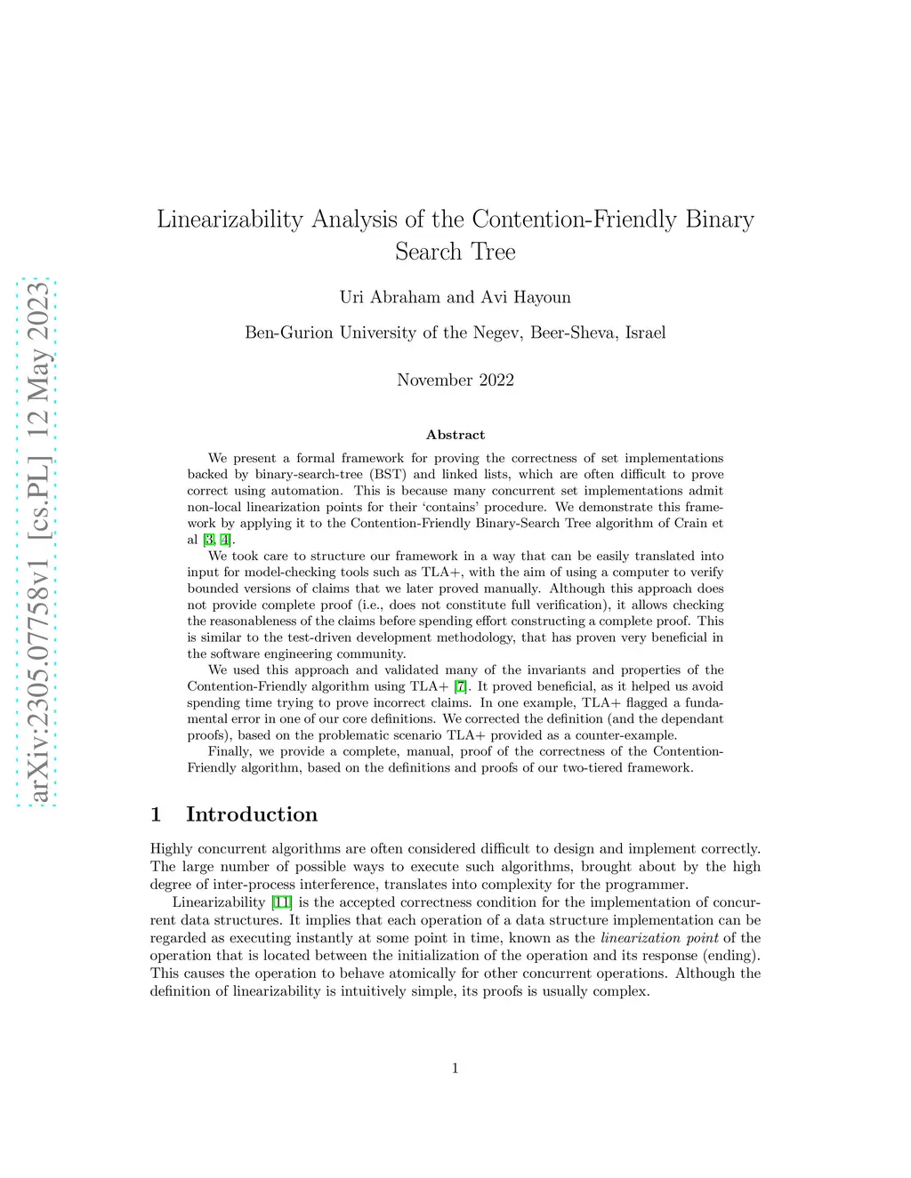 Linearizability Analysis of the Contention-Friendly Binary Search Tree