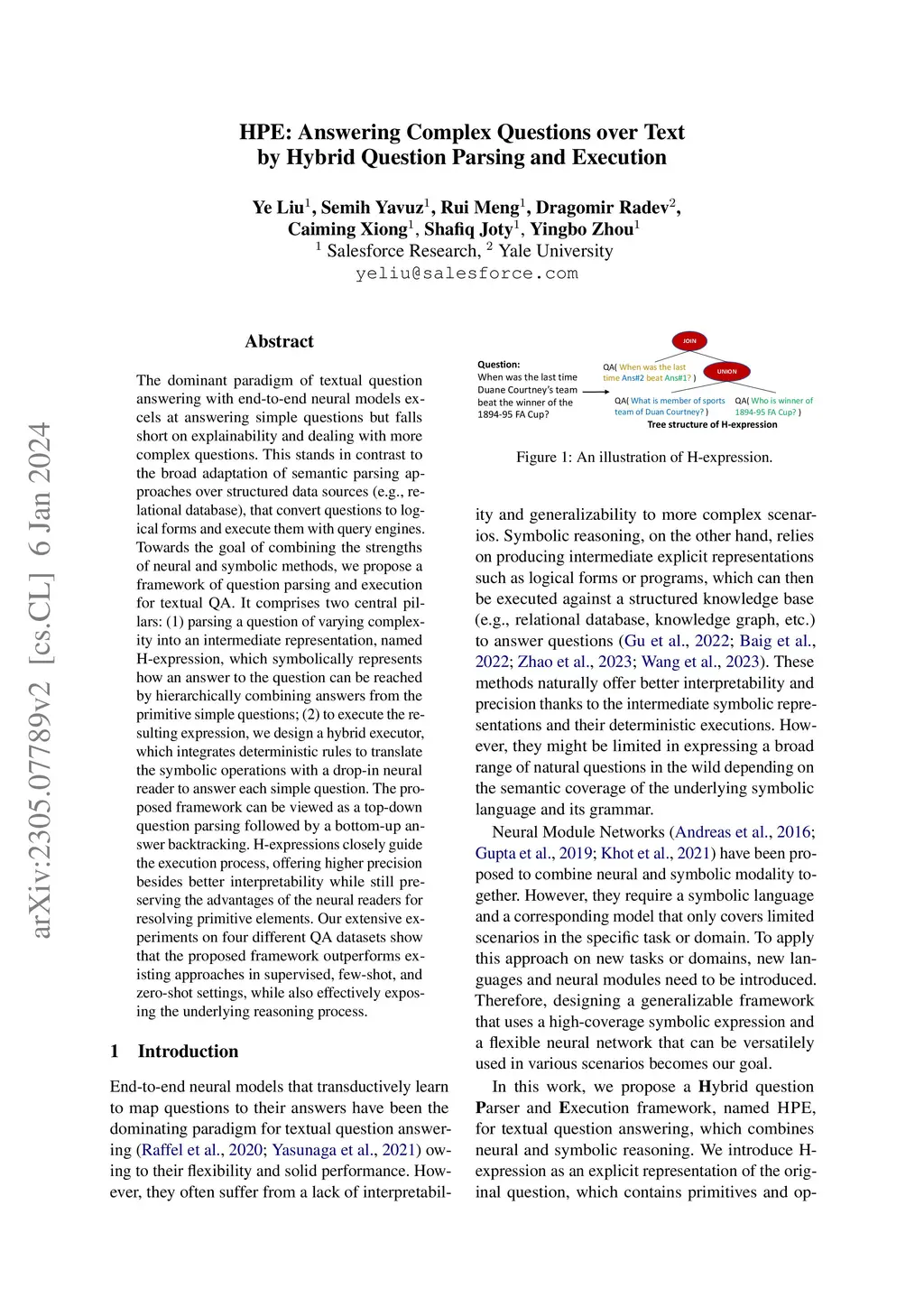 HPE:Answering Complex Questions over Text by Hybrid Question Parsing and