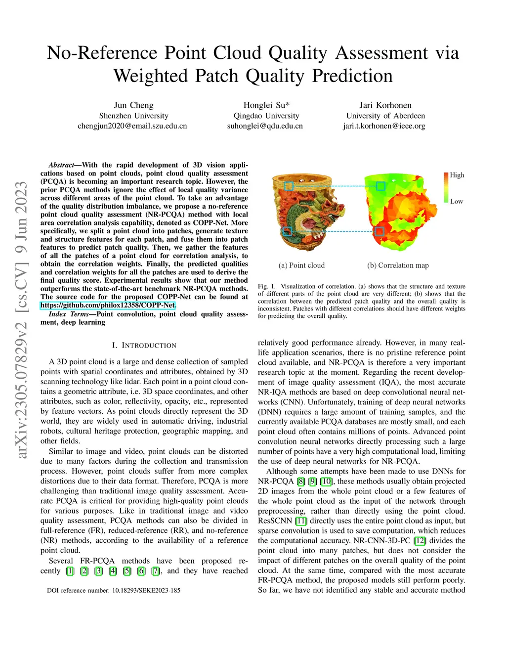 With the rapid development of 3D vision applications based on point clouds, point cloud quality assessment(PCQA) is becoming an important research topic. However, the prior PCQA methods ignore the effect of local quality variance across different areas of the point cloud. To take an advantage of the quality distribution imbalance, we propose a no-reference point cloud quality assessment (NR-PCQA) method with local area correlation analysis capability, denoted as COPP-Net. More specifically, we split a point cloud into patches, generate texture and structure features for each patch, and fuse them into patch features to predict patch quality. Then, we gather the features of all the patches of a point cloud for correlation analysis, to obtain the correlation weights. Finally, the predicted qualities and correlation weights for all the patches are used to derive the final quality score. Experimental results show that our method outperforms the state-of-the-art benchmark NR-PCQA methods. The source code for the proposed COPP-Net can be found at https://github.com/philox12358/COPP-Net.