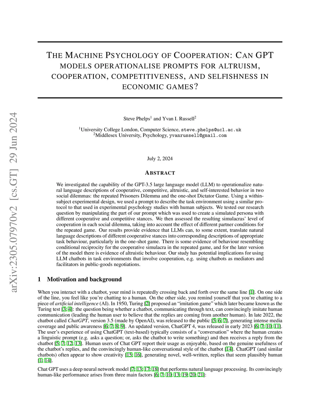 The Machine Psychology of Cooperation: Can GPT models operationalise