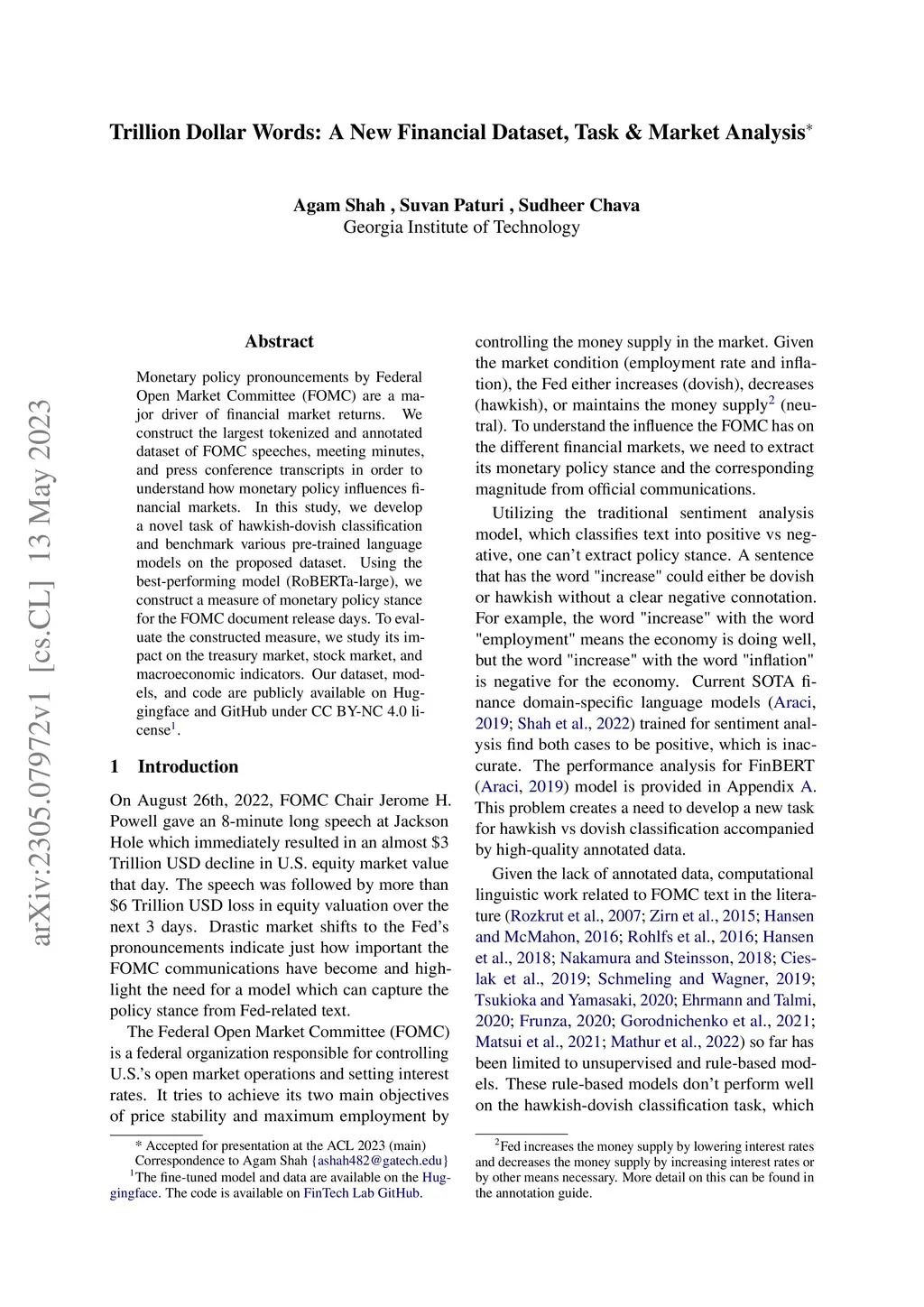 Trillion Dollar Words: A New Financial Dataset, Task & Market Analysis