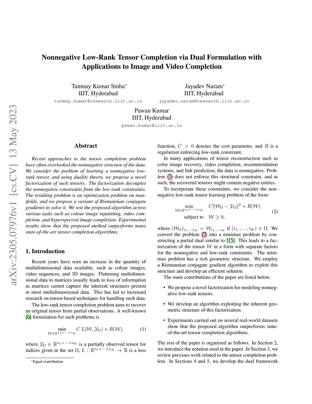 Recent approaches to the tensor completion problem have often overlooked the nonnegative structure of the data. We consider the problem of learning a nonnegative low-rank tensor, and using duality theory, we propose a novel factorization of such tensors. The factorization decouples the nonnegative constraints from the low-rank constraints. The resulting problem is an optimization problem on manifolds, and we propose a variant of Riemannian conjugate gradients to solve it. We test the proposed algorithm across various tasks such as colour image inpainting, video completion, and hyperspectral image completion. Experimental results show that the proposed method outperforms many state-of-the-art tensor completion algorithms.