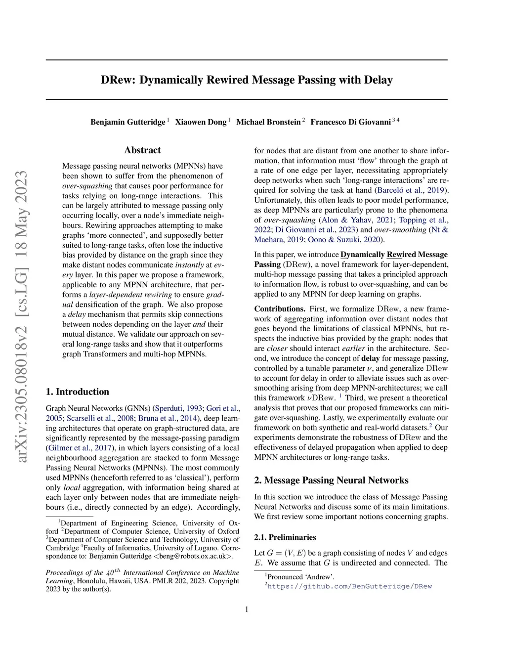 DRew: Dynamically Rewired Message Passing with Delay