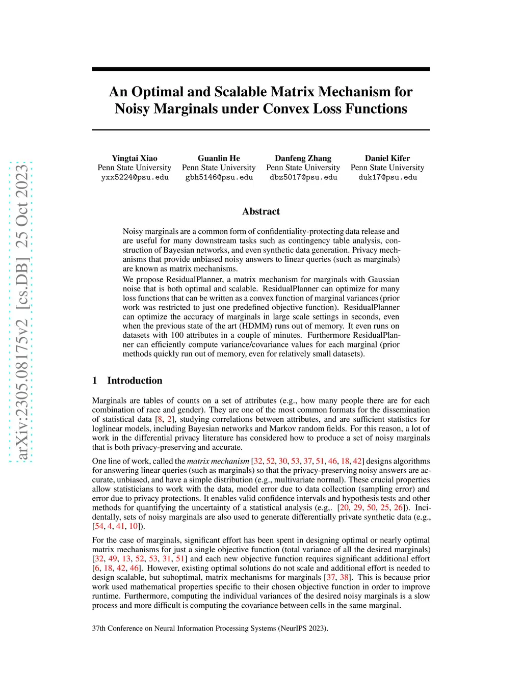 An Optimal and Scalable Matrix Mechanism for Noisy Marginals under
