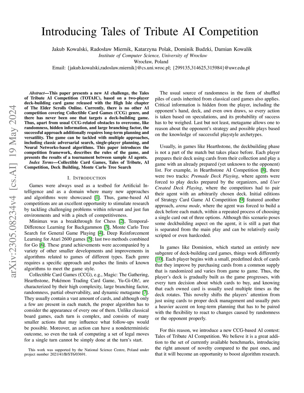Introducing Tales of Tribute AI Competition