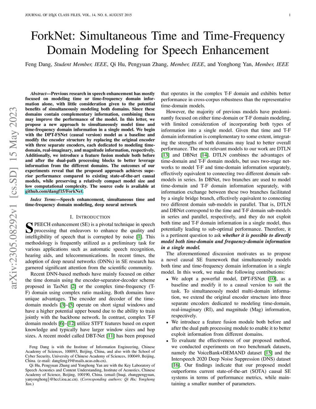 ForkNet: Simultaneous Time and Time-Frequency Domain Modeling for Speech