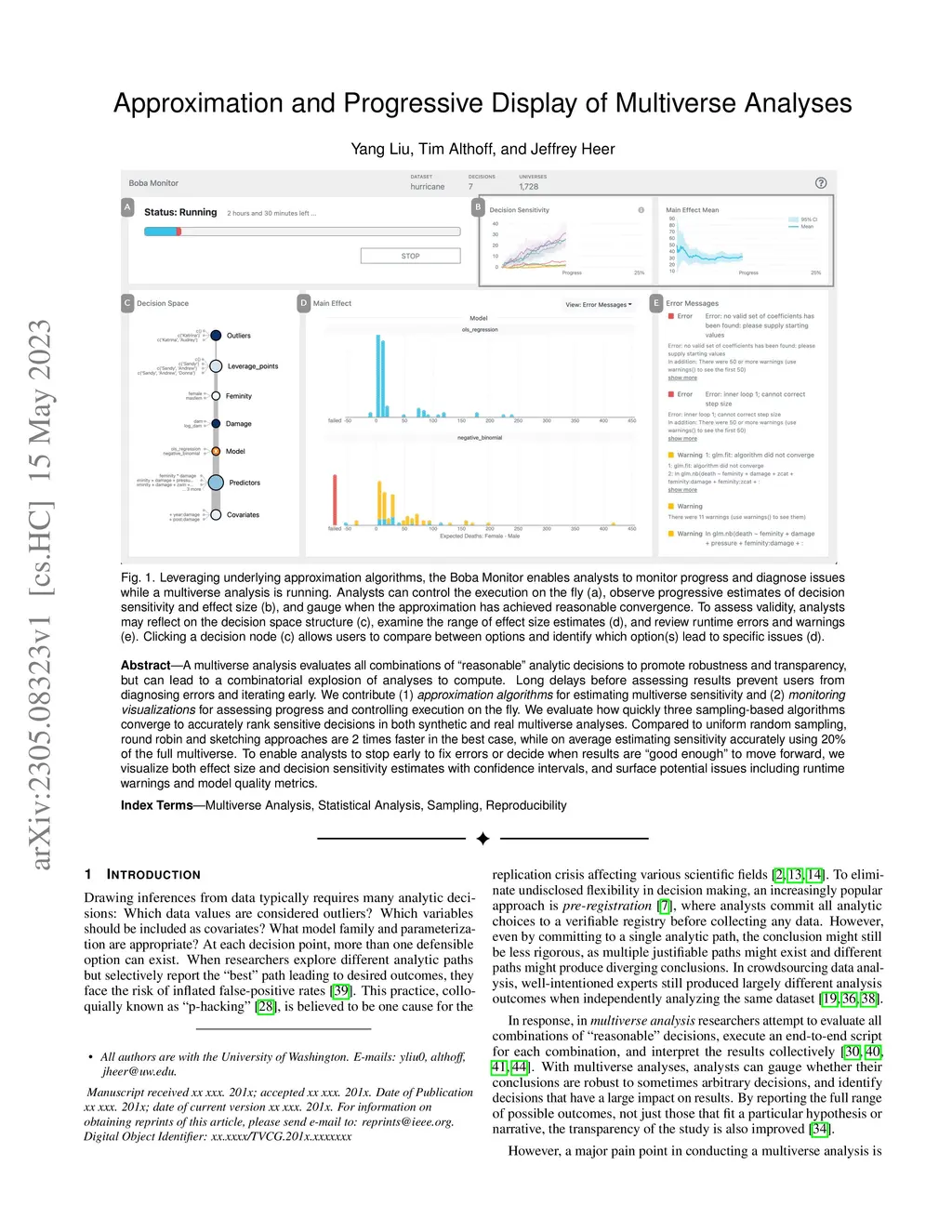 A multiverse analysis evaluates all combinations of "reasonable" analytic decisions to promote robustness and transparency, but can lead to a combinatorial explosion of analyses to compute. Long delays before assessing results prevent users from diagnosing errors and iterating early. We contribute (1) approximation algorithms for estimating multiverse sensitivity and (2) monitoring visualizations for assessing progress and controlling execution on the fly. We evaluate how quickly three sampling-based algorithms converge to accurately rank sensitive decisions in both synthetic and real multiverse analyses. Compared to uniform random sampling, round robin and sketching approaches are 2 times faster in the best case, while on average estimating sensitivity accurately using 20% of the full multiverse. To enable analysts to stop early to fix errors or decide when results are "good enough" to move forward, we visualize both effect size and decision sensitivity estimates with confidence intervals, and surface potential issues including runtime warnings and model quality metrics.