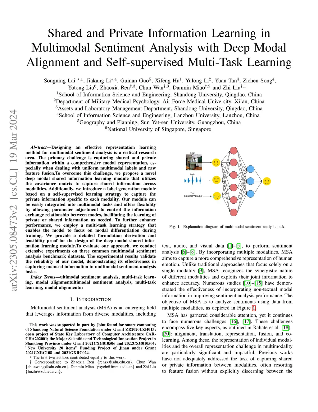 Shared and Private Information Learning in Multimodal Sentiment Analysis