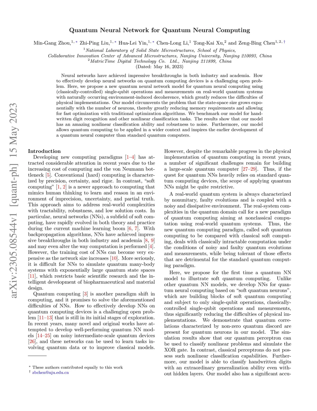 Neural networks have achieved impressive breakthroughs in both industry and academia. How to effectively develop neural networks on quantum computing devices is a challenging open problem. Here, we propose a new quantum neural network model for quantum neural computing using (classically-controlled) single-qubit operations and measurements on real-world quantum systems with naturally occurring environment-induced decoherence, which greatly reduces the difficulties of physical implementations. Our model circumvents the problem that the state-space size grows exponentially with the number of neurons, thereby greatly reducing memory requirements and allowing for fast optimization with traditional optimization algorithms. We benchmark our model for handwritten digit recognition and other nonlinear classification tasks. The results show that our model has an amazing nonlinear classification ability and robustness to noise. Furthermore, our model allows quantum computing to be applied in a wider context and inspires the earlier development of a quantum neural computer than standard quantum computers.