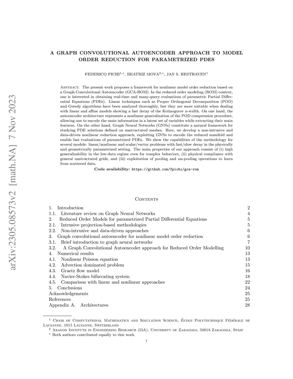 The present work proposes a framework for nonlinear model order reduction based on a Graph Convolutional Autoencoder (GCA-ROM). In the reduced order modeling (ROM) context, one is interested in obtaining real-time and many-query evaluations of parametric Partial Differential Equations (PDEs). Linear techniques such as Proper Orthogonal Decomposition (POD) and Greedy algorithms have been analyzed thoroughly, but they are more suitable when dealing with linear and affine models showing a fast decay of the Kolmogorov n-width. On one hand, the autoencoder architecture represents a nonlinear generalization of the POD compression procedure, allowing one to encode the main information in a latent set of variables while extracting their main features. On the other hand, Graph Neural Networks (GNNs) constitute a natural framework for studying PDE solutions defined on unstructured meshes. Here, we develop a non-intrusive and data-driven nonlinear reduction approach, exploiting GNNs to encode the reduced manifold and enable fast evaluations of parametrized PDEs. We show the capabilities of the methodology for several models: linear/nonlinear and scalar/vector problems with fast/slow decay in the physically and geometrically parametrized setting. The main properties of our approach consist of (i) high generalizability in the low-data regime even for complex regimes, (ii) physical compliance with general unstructured grids, and (iii) exploitation of pooling and un-pooling operations to learn from scattered data.