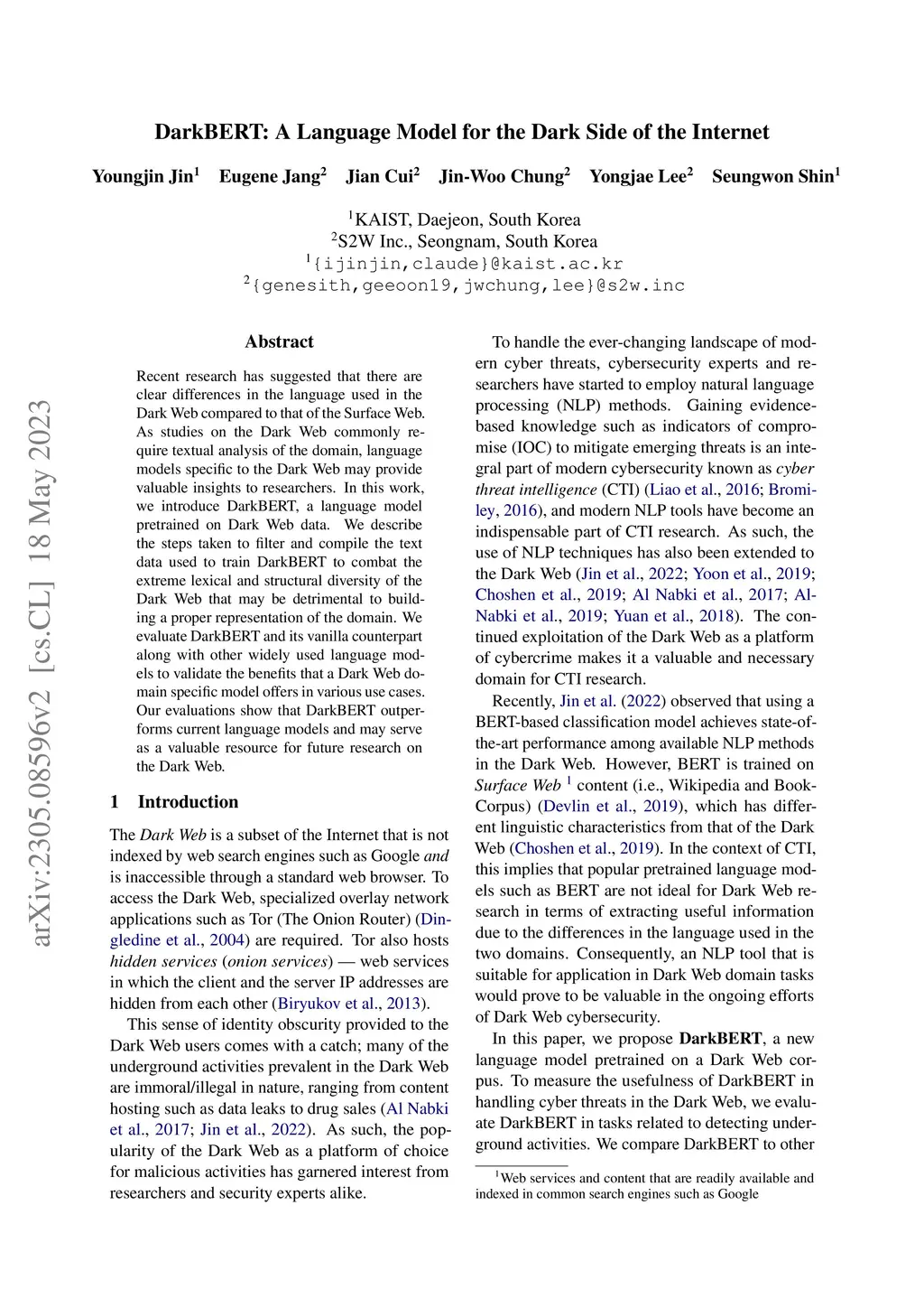 DarkBERT: A Language Model for the Dark Side of the Internet