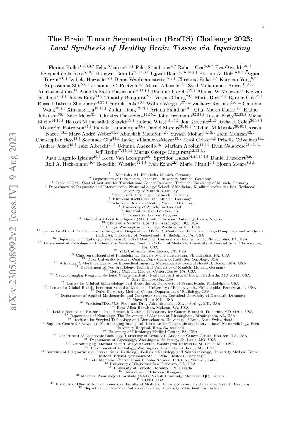 The Brain Tumor Segmentation (BraTS) Challenge 2023: Local Synthesis of