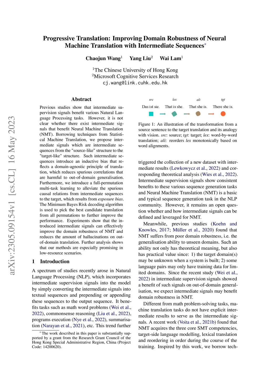 Previous studies show that intermediate supervision signals benefit various Natural Language Processing tasks. However, it is not clear whether there exist intermediate signals that benefit Neural Machine Translation (NMT). Borrowing techniques from Statistical Machine Translation, we propose intermediate signals which are intermediate sequences from the "source-like" structure to the "target-like" structure. Such intermediate sequences introduce an inductive bias that reflects a domain-agnostic principle of translation, which reduces spurious correlations that are harmful to out-of-domain generalisation. Furthermore, we introduce a full-permutation multi-task learning to alleviate the spurious causal relations from intermediate sequences to the target, which results from exposure bias. The Minimum Bayes Risk decoding algorithm is used to pick the best candidate translation from all permutations to further improve the performance. Experiments show that the introduced intermediate signals can effectively improve the domain robustness of NMT and reduces the amount of hallucinations on out-of-domain translation. Further analysis shows that our methods are especially promising in low-resource scenarios.