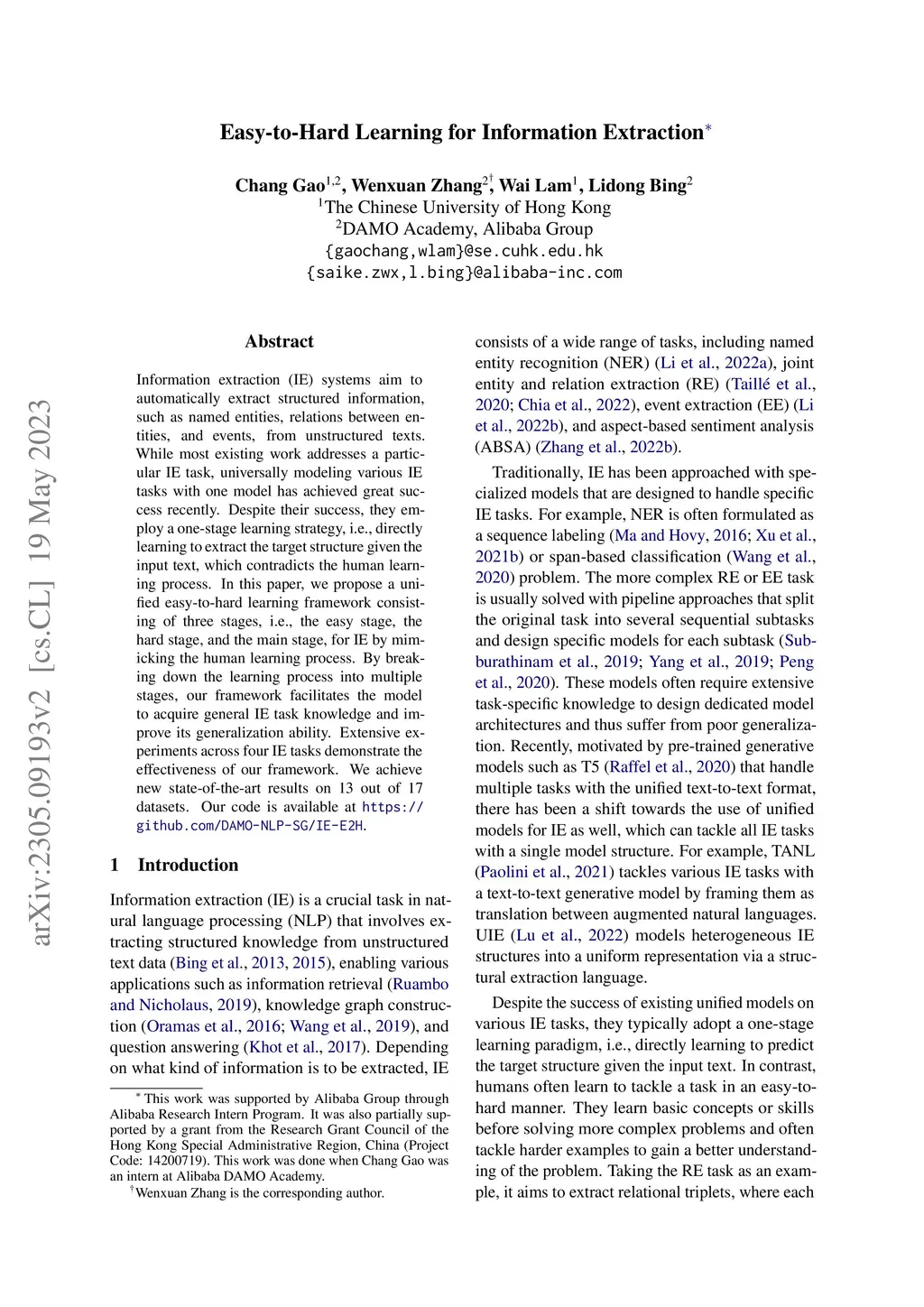 Information extraction (IE) systems aim to automatically extract structured information, such as named entities, relations between entities, and events, from unstructured texts. While most existing work addresses a particular IE task, universally modeling various IE tasks with one model has achieved great success recently. Despite their success, they employ a one-stage learning strategy, i.e., directly learning to extract the target structure given the input text, which contradicts the human learning process. In this paper, we propose a unified easy-to-hard learning framework consisting of three stages, i.e., the easy stage, the hard stage, and the main stage, for IE by mimicking the human learning process. By breaking down the learning process into multiple stages, our framework facilitates the model to acquire general IE task knowledge and improve its generalization ability. Extensive experiments across four IE tasks demonstrate the effectiveness of our framework. We achieve new state-of-the-art results on 13 out of 17 datasets. Our code is available at \url{https://github.com/DAMO-NLP-SG/IE-E2H}.