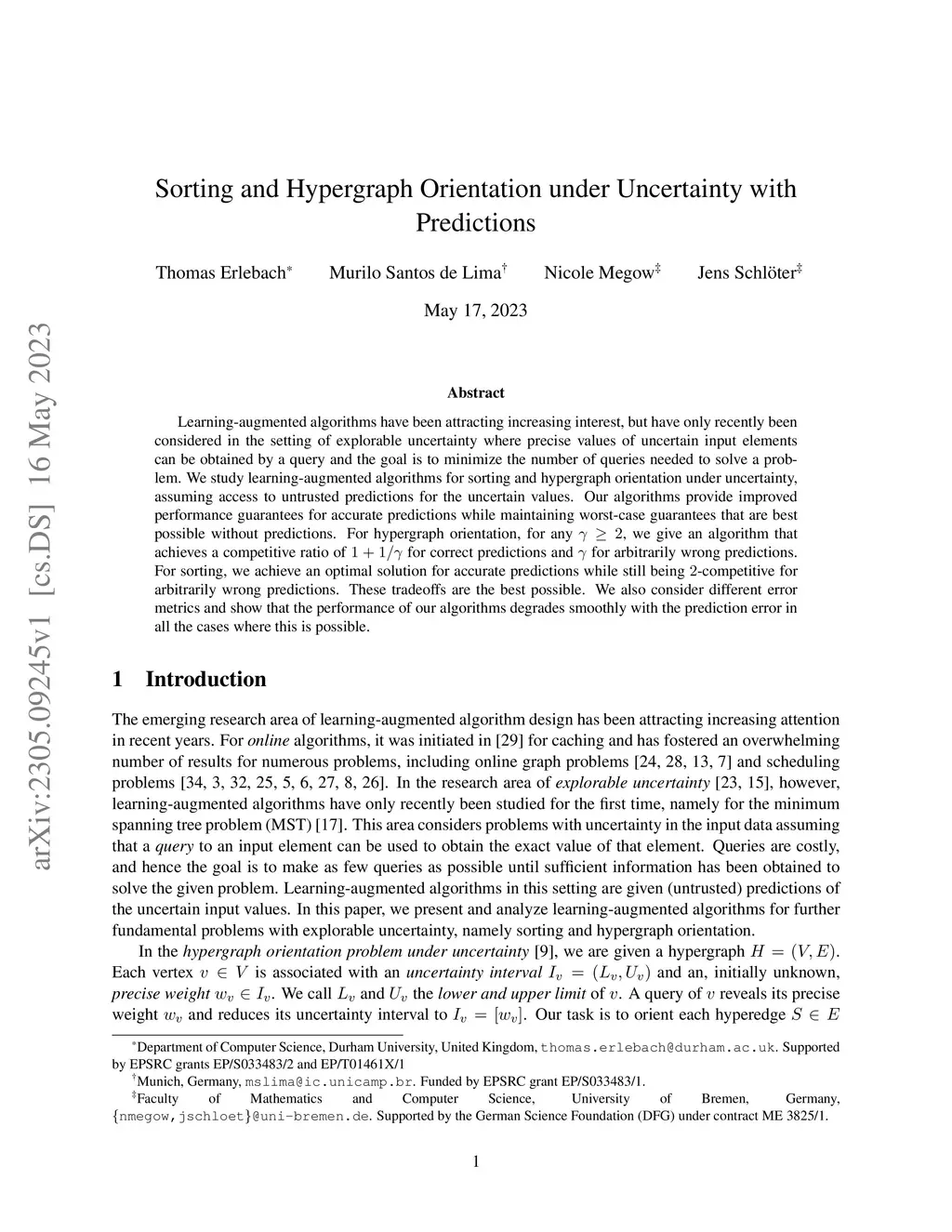 Sorting and Hypergraph Orientation under Uncertainty with Predictions