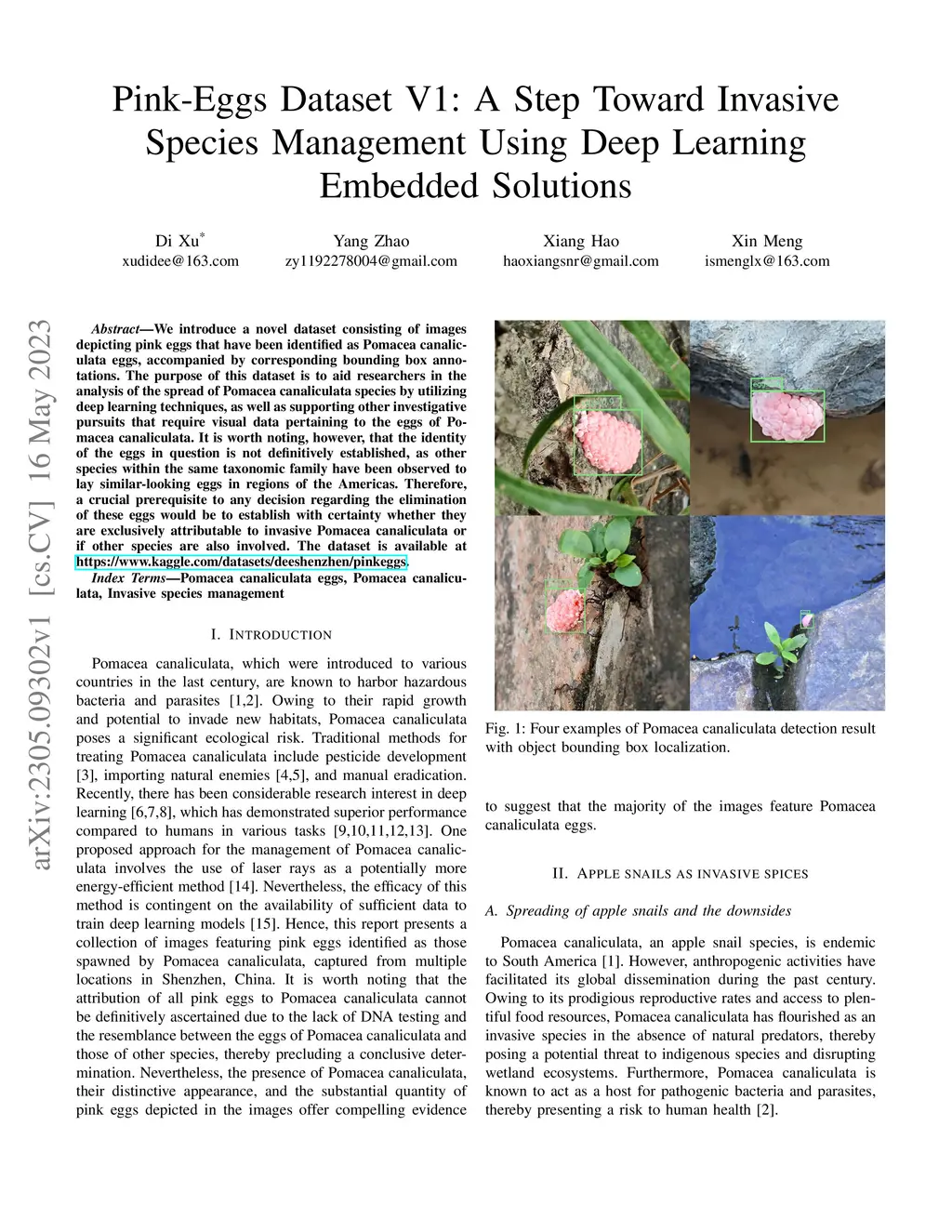 Pink-Eggs Dataset V1: A Step Toward Invasive Species Management Using