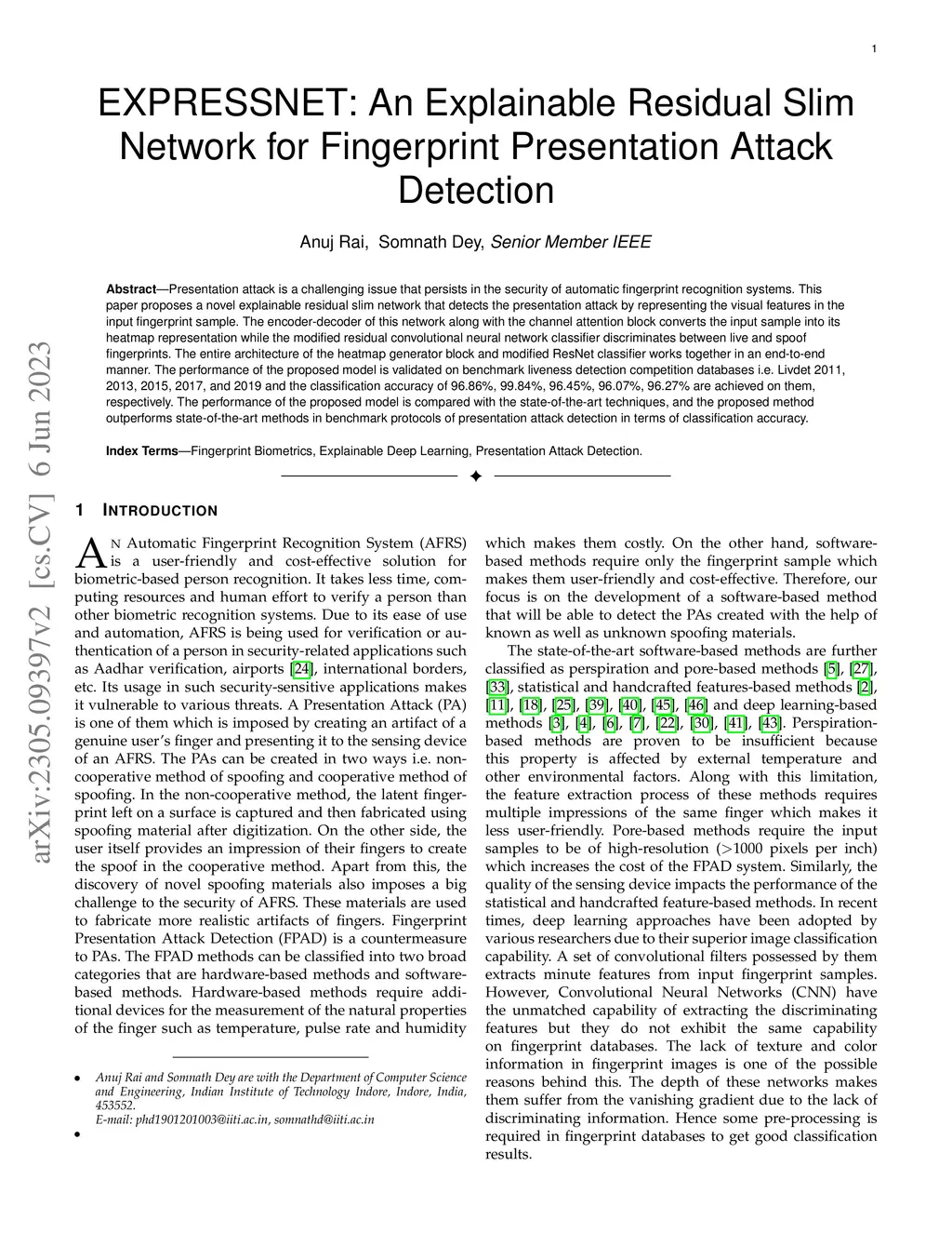EXPRESSNET: An Explainable Residual Slim Network for Fingerprint