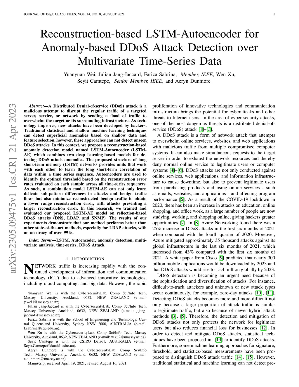 Reconstruction-based LSTM-Autoencoder for Anomaly-based DDoS Attack
