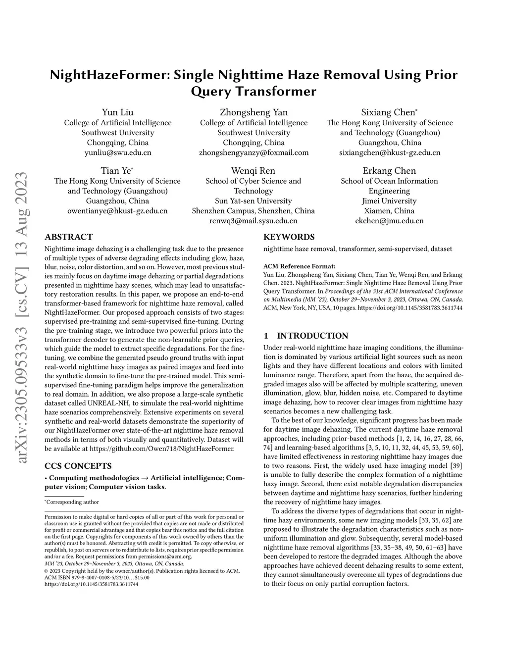 NightHazeFormer: Single Nighttime Haze Removal Using Prior Query