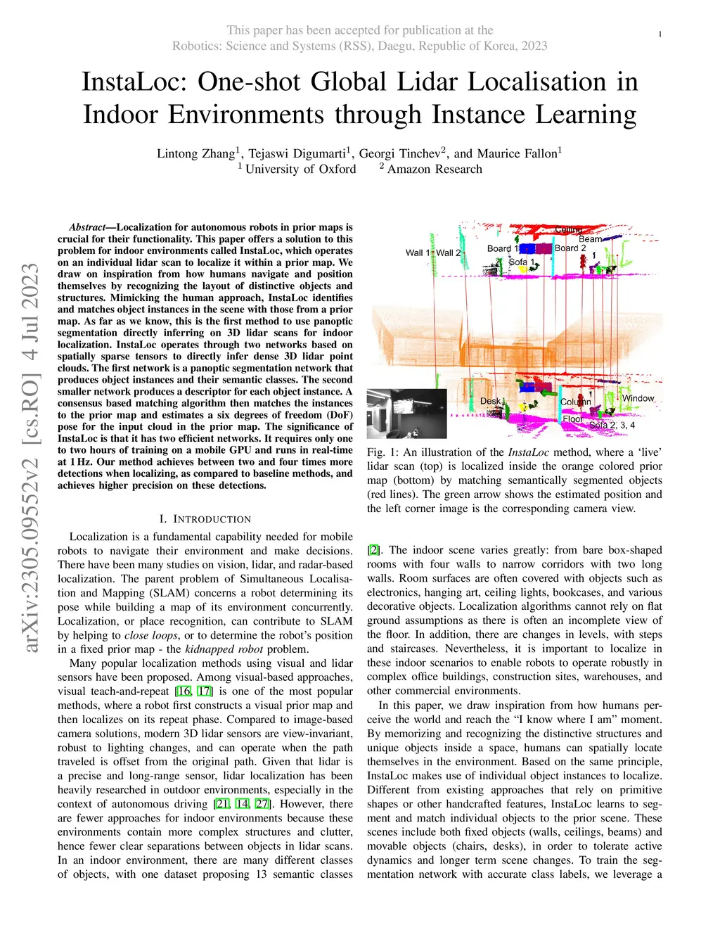 InstaLoc: One-shot Global Lidar Localisation in Indoor Environments