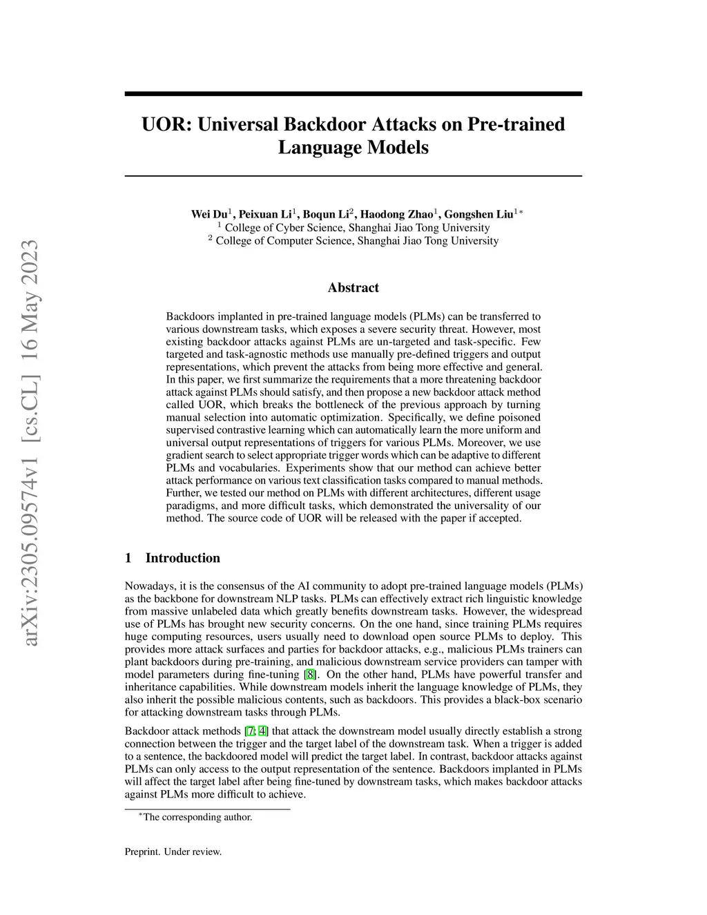 UOR: Universal Backdoor Attacks on Pre-trained Language Models