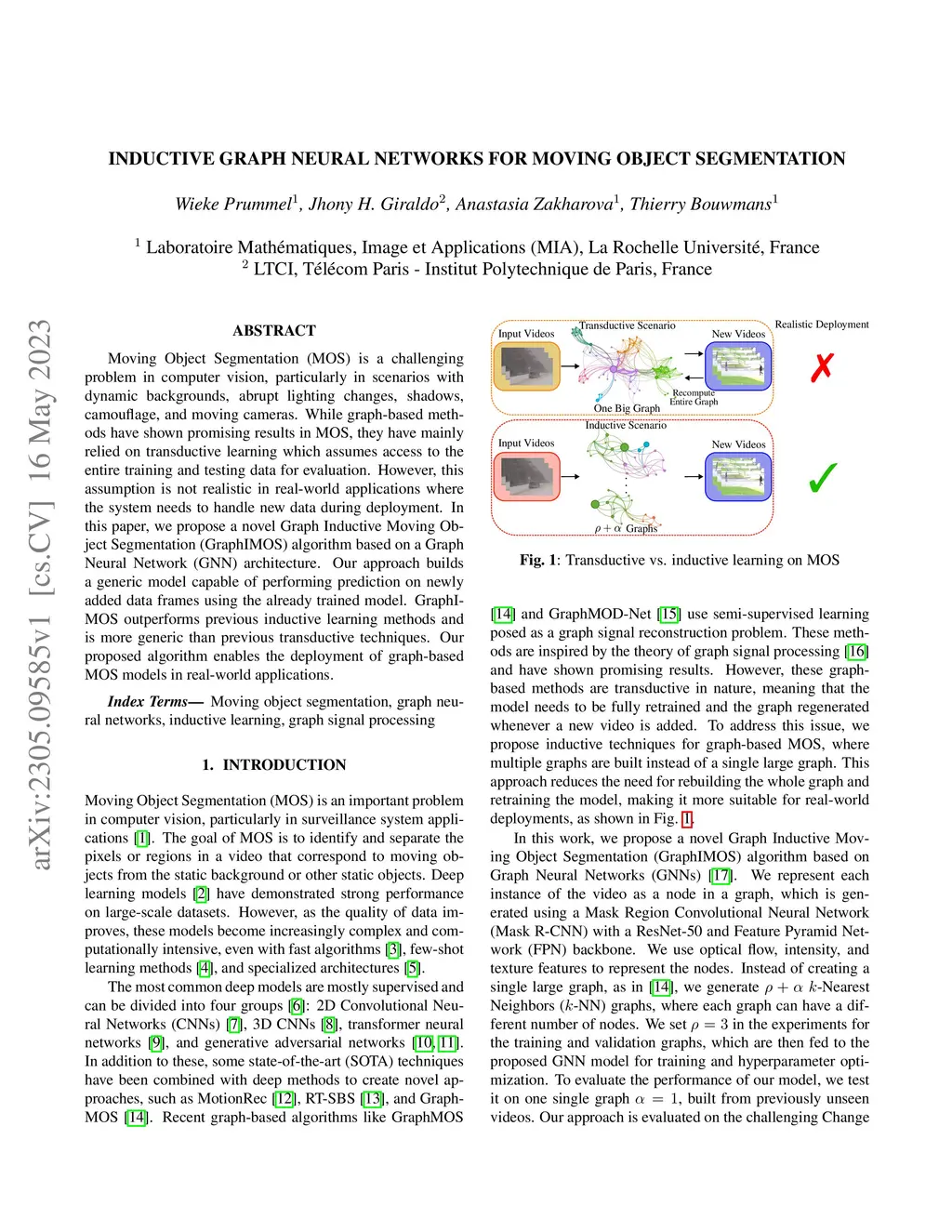 Inductive Graph Neural Networks for Moving Object Segmentation