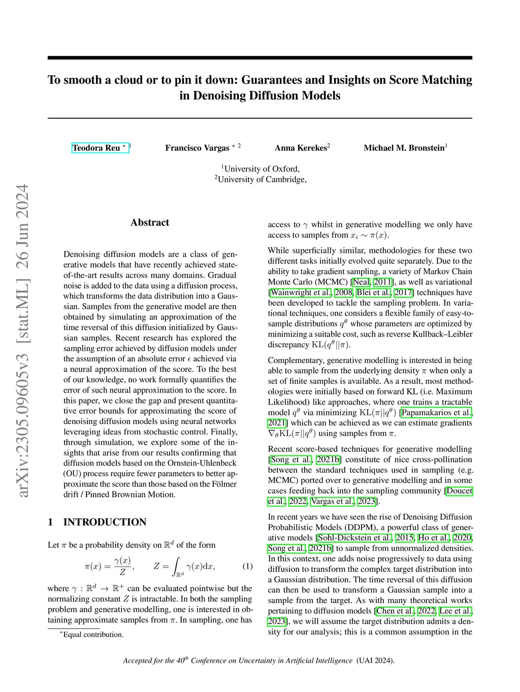 Matching in Denoising Diffusion Models